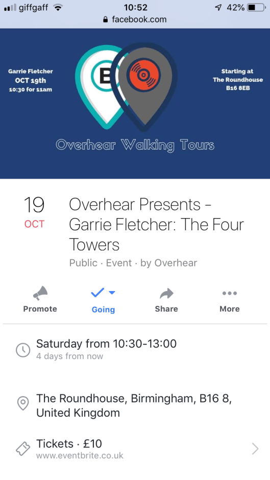 I’m walking and talking this Saturday the 19th of October, tomorrow. The wonderful people at Overhear Poetry commissioned me to create a walk that would be a writerly response to my home city of Birmingham, so that’s what I’ve done.
