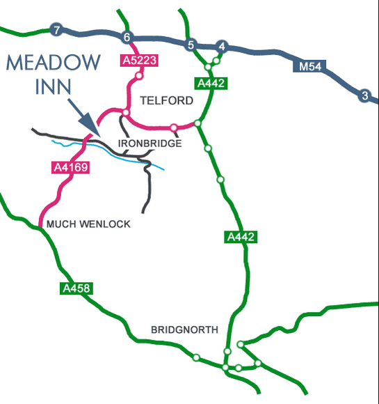 The Meadow Inn looks lovely, I’ve never been, but the photos are excellent, and it looks over the river Severn in Ironbridge. Look, here’s a picture montage followed by a map.