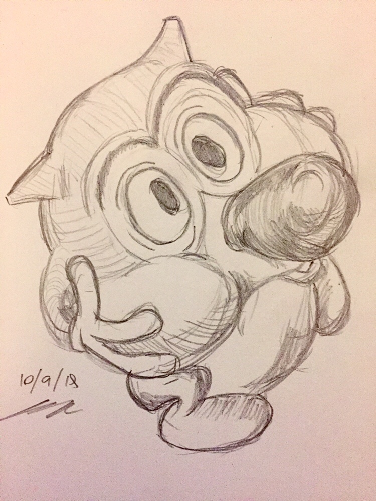 Tonight’s speed sketch is once again in pencil on paper. This is a real quickie as I’m short on time. This is a drawing of a 3D bath toy that a friend brought back from the States in the 90’s.